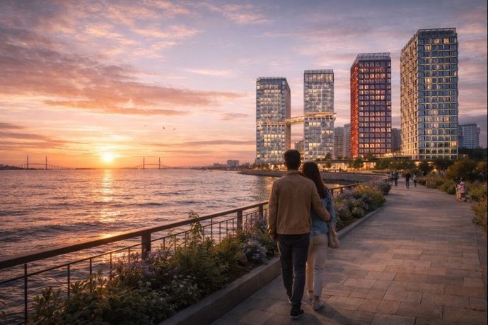 Пять башен на первой линии Финского залива. 80% квартир с видом на воду и «Небесный мост».