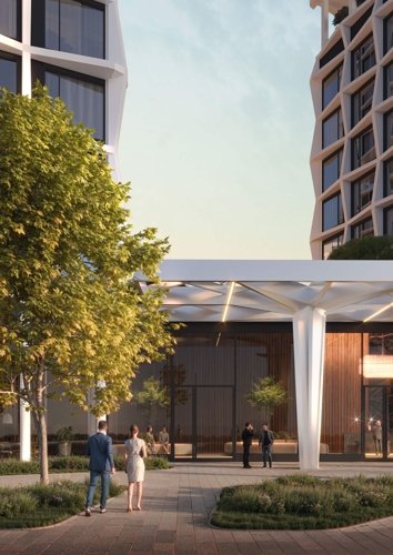 На кровле стилобата — сады, амфитеатр, спортивные и игровые пространства.