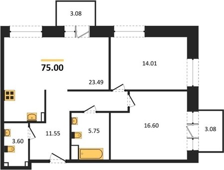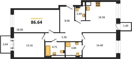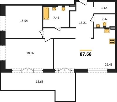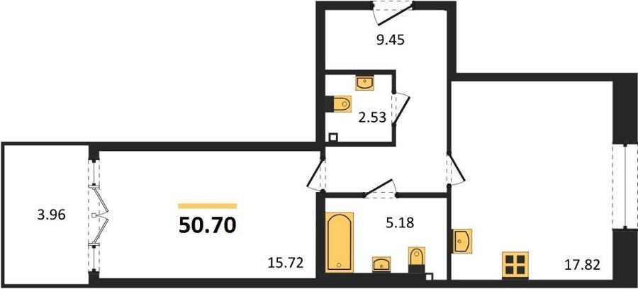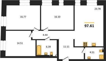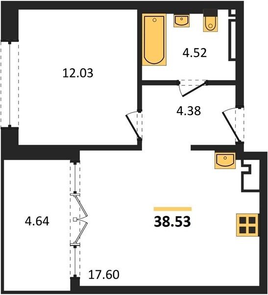 Площадь от 38.51 м2