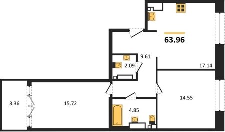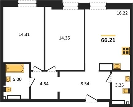 Площадь от 62.21 м2