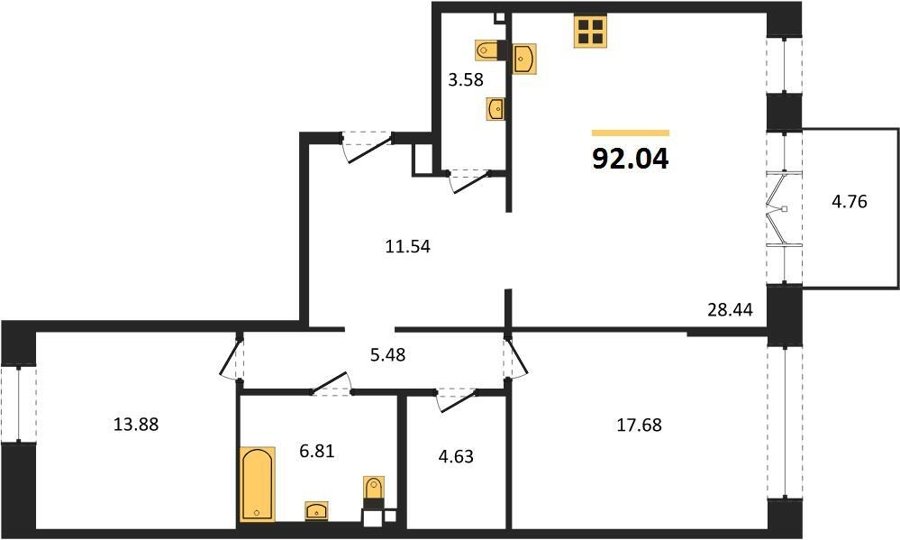 Площадь от 92.29 м2