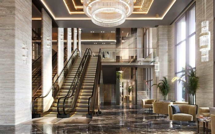 Сервис уровня пятизвёздочного отеля и премиальные интерьеры общественных зон.