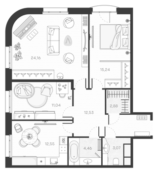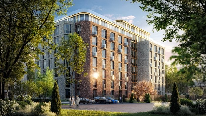 Клубный дом на 125 квартир. Небольшое число соседей и приватная атмосфера проживания.