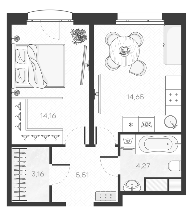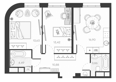 Площадь от 40.69 м2