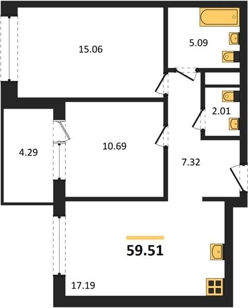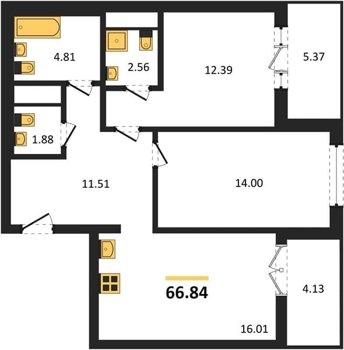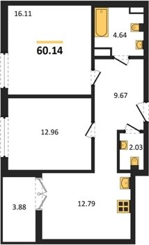 Площадь от 58.35 м2