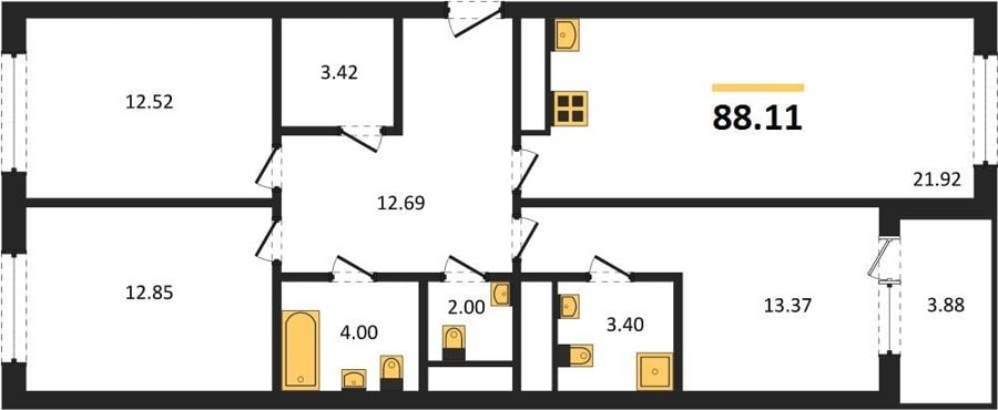 Площадь от 82.37 м2
