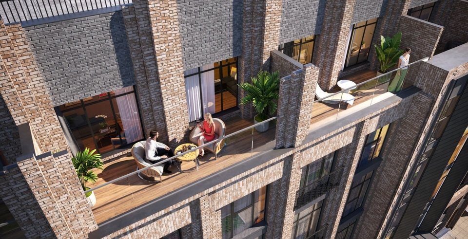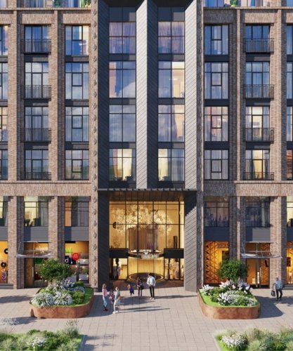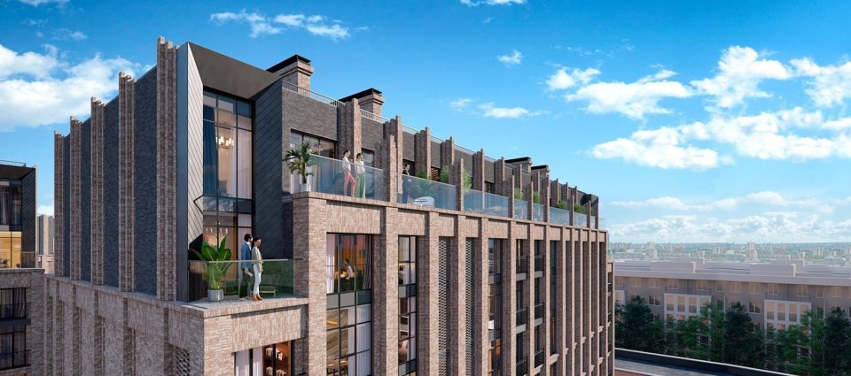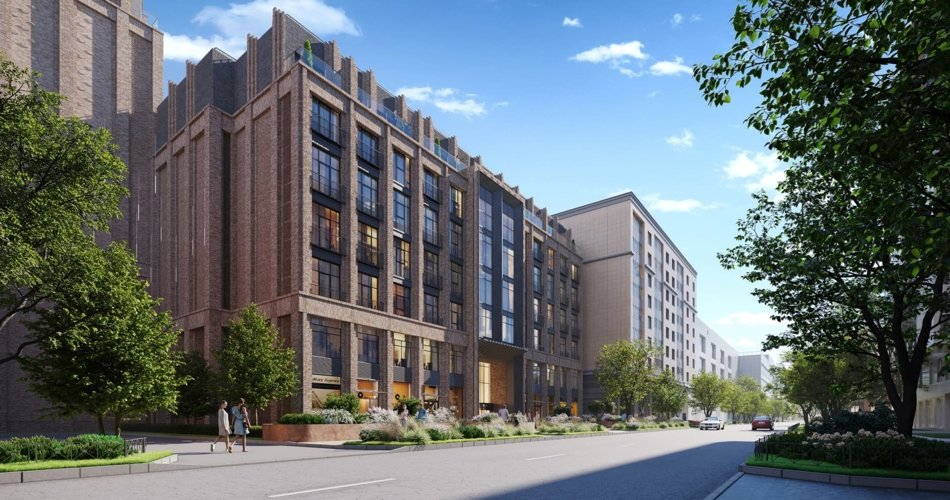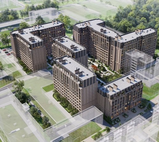 Проект включает 5 корпусов высотой 7–12 этажей. Архитектура в стиле неомодернизма, фасады из клинкерного кирпича. Подземный паркинг на 660 мест с лифтом, гранд-лобби 7,7 м, комьюнити-клуб и благоустройство от Derevo Park.