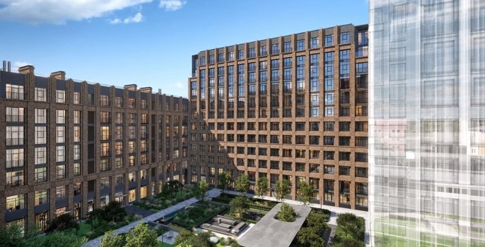5 корпусов высотой 7–12 этажей формируют приватный двор с гранд-лобби и комьюнити-клубом.