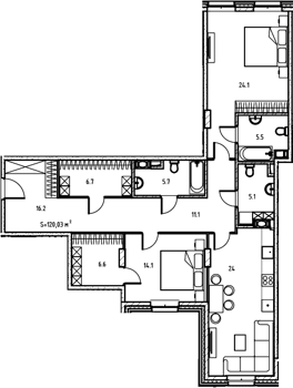 Площадь от 113.9 м2