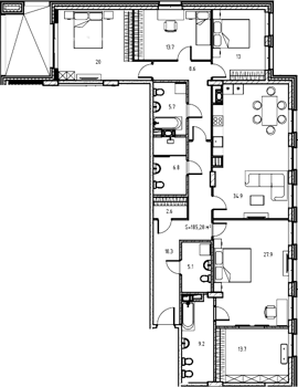 Площадь от 152.8 м2