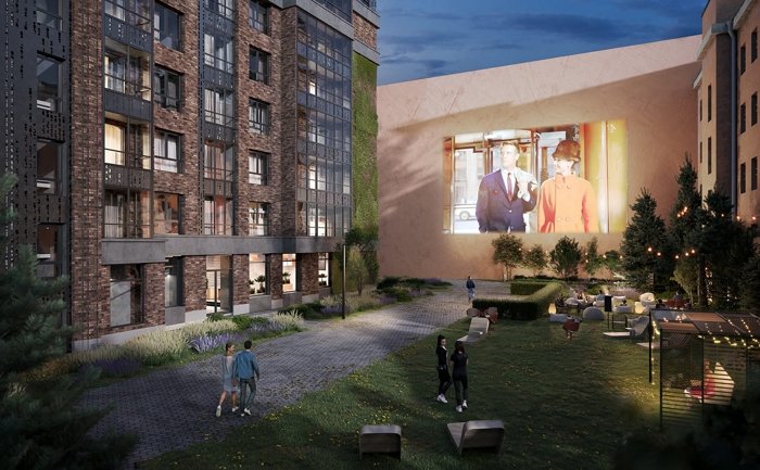 Исторический брандмауэр используется как экран для летних кинопоказов и арт-инсталляций.