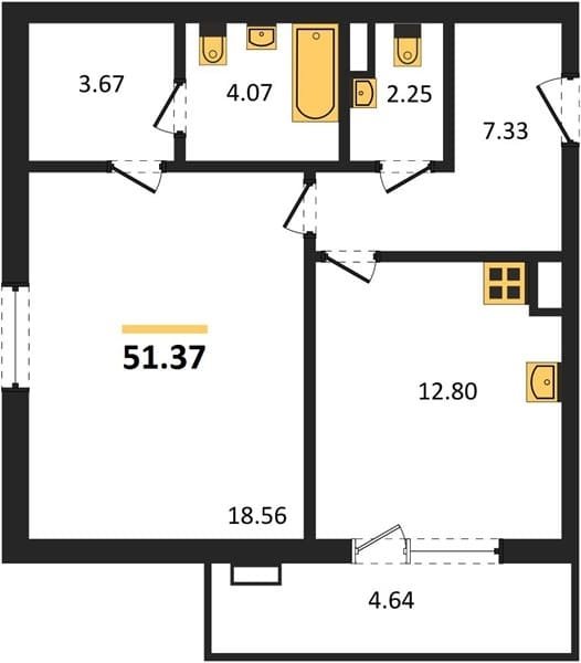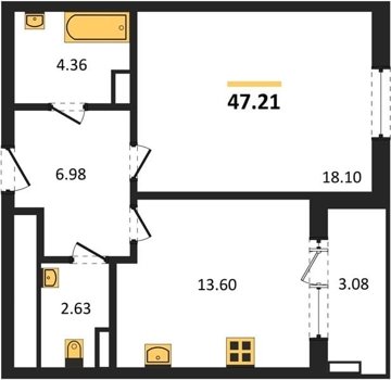 Площадь от 45.4 м2