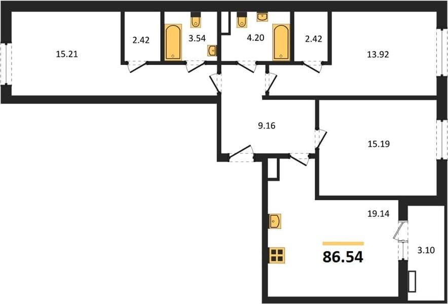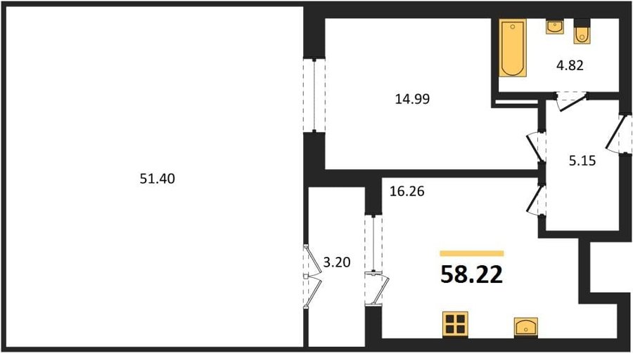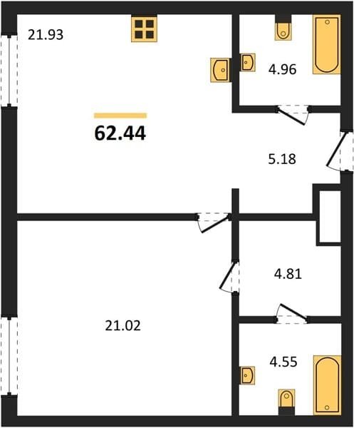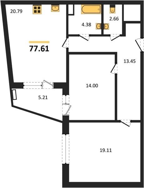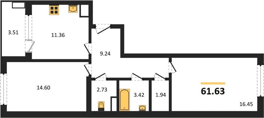 Площадь от 61.59 м2