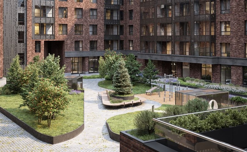 Потолки 2,84–3,34 м и увеличенные окна. В некоторых квартирах предусмотрены террасы.