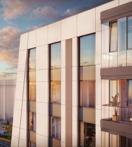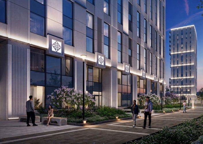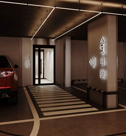 Проект состоит из двух 17-этажных домов с архитектурой из архитектурного бетона и декоративной подсветкой. Закрытая территория с выходом в парк, подземный паркинг с лифтом, отделка White Box и система «Умный дом».