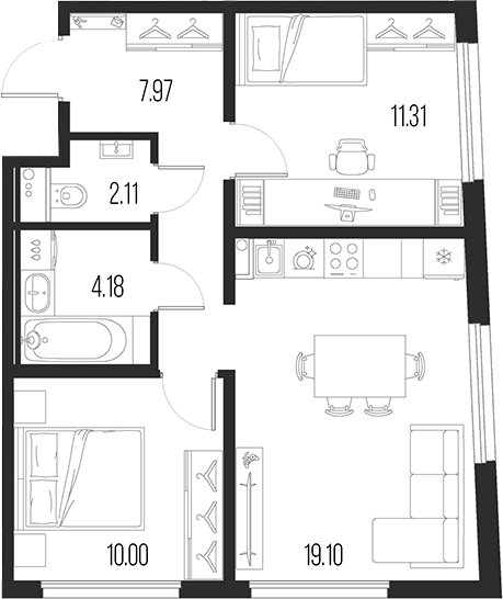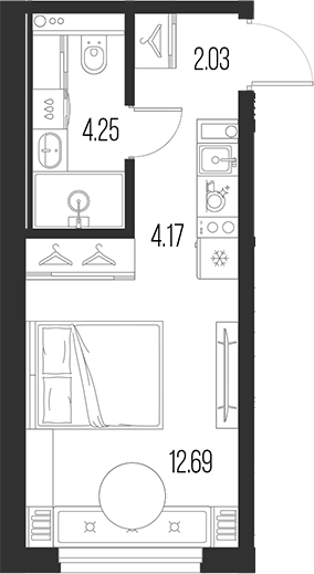 Квартиры Suite S–XL с продуманным зонированием и современными планировками.