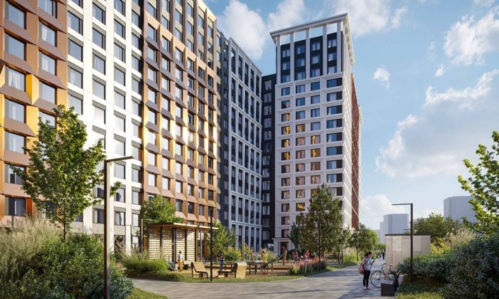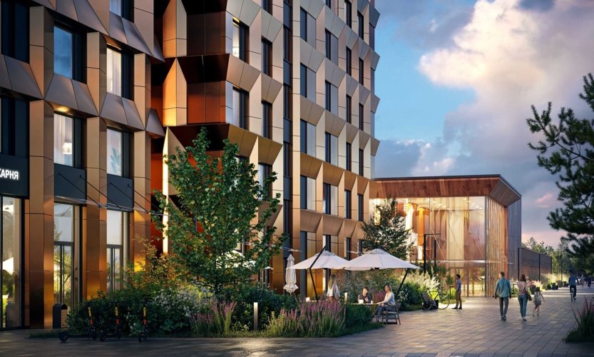 Проект состоит из 7 корпусов высотой 11–17 этажей, объединённых закрытым двором. Формат — сьюты, спроектированные по принципам отельной архитектуры, с комплектацией TechnoBox и подготовкой к системе Smart Home.